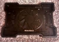 Cooler Master Notepal X-Slim laptop cooler. Sits underneath your laptop computer and blows additional air, keeping it cool. I bought this as I was working in a loft over the summer and my computer kept overheating and shutting down. Very quiet, powered via clever USB passthrough plug that leaves the port available for other devices. Works great.
